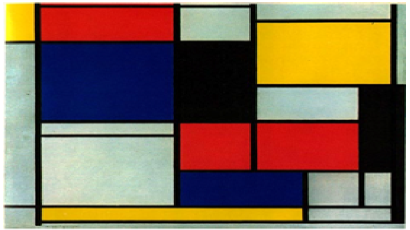 Este óleo sobre lienzo de 60x60 hecho en Países Bajos (1921), se encuentra en Art Institvte Chicago. En esta pintura No existe la profundidad, no existe ningún tipo de referencia figurativa, no existe ni siquiera una simbología. El neoplasticismo se trata de eso, un arte puro: línea y color, unidas en un mismo espacio.